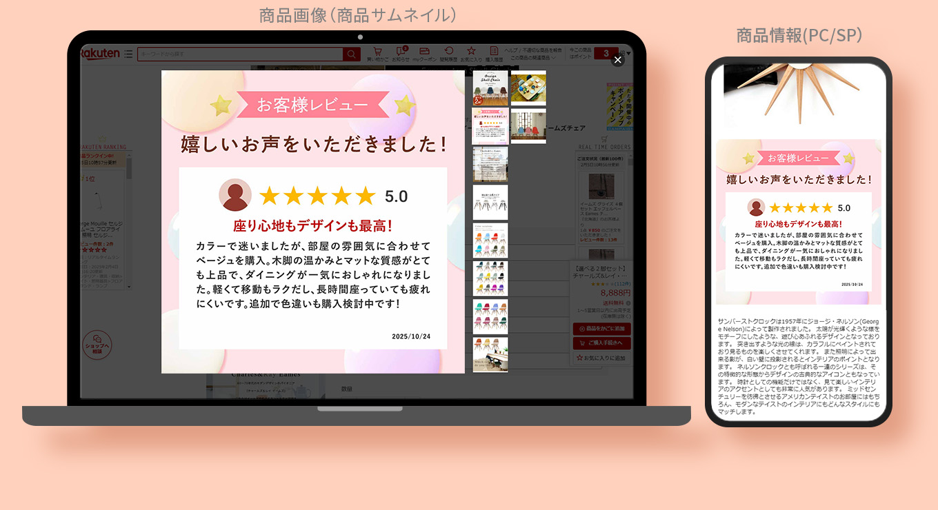※ご利用の商品ページテンプレートによってPC用販売説明文の表示位置は変わります